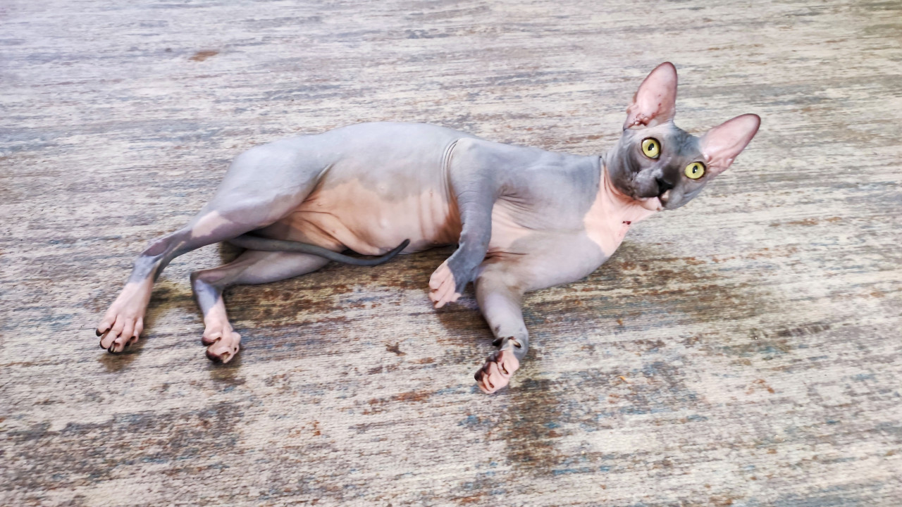 животное кошка кот домашний питомец порода кошек лежит отдых лапы хвост уши взгляд портрет животного домашнее животное питомец сфинкс бесшерстная кошка голая кожа складки кожи большие уши зеленые глаза интерьер дом ковер домашний уют уход за животными ветеринария зоомагазин аллергия на шерсть ласковый питомец любопытный взгляд хобби семейная жизнь селекцияПохожие фотографии