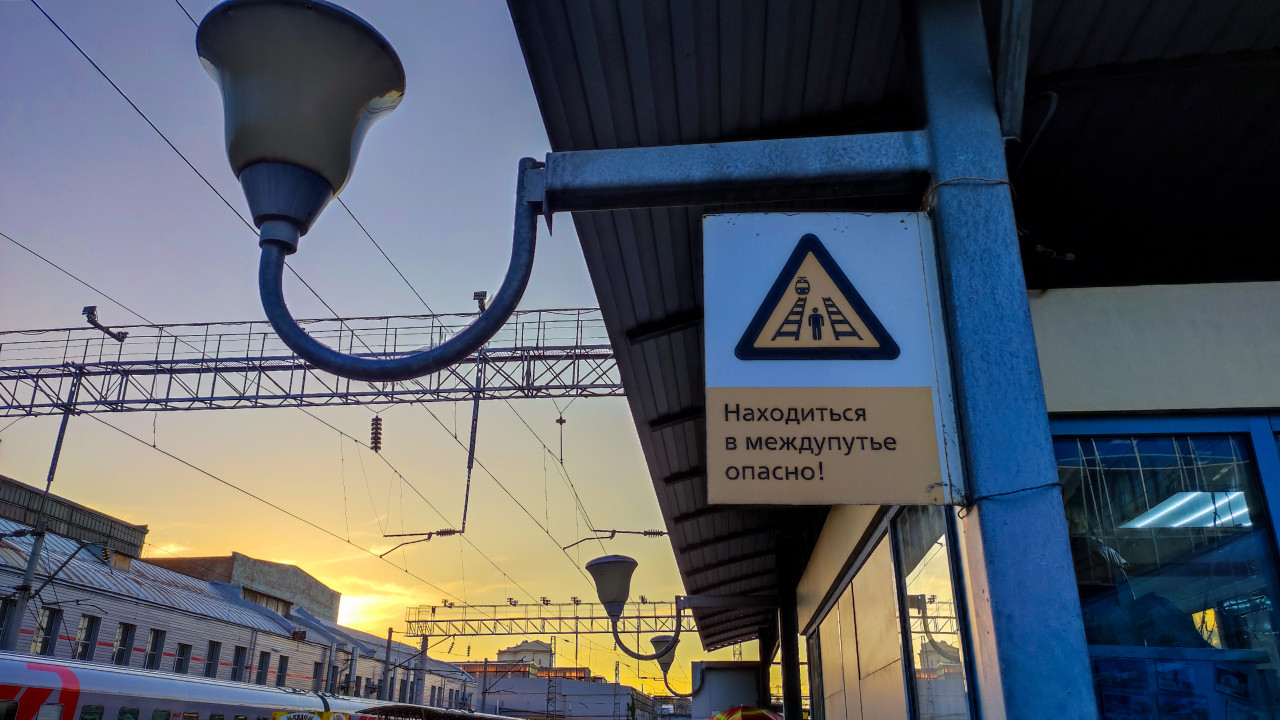 транспорт железная дорога станция вокзал инфраструктура путешествие безопасность предупреждение знак табличка правила перрон междупутье опасность контактная сеть провода опора фонарь навес общественное место пассажиры техника безопасности пиктограмма закат вечернее небо городской транспорт пути железнодорожные линии информационный щитПохожие фотографии