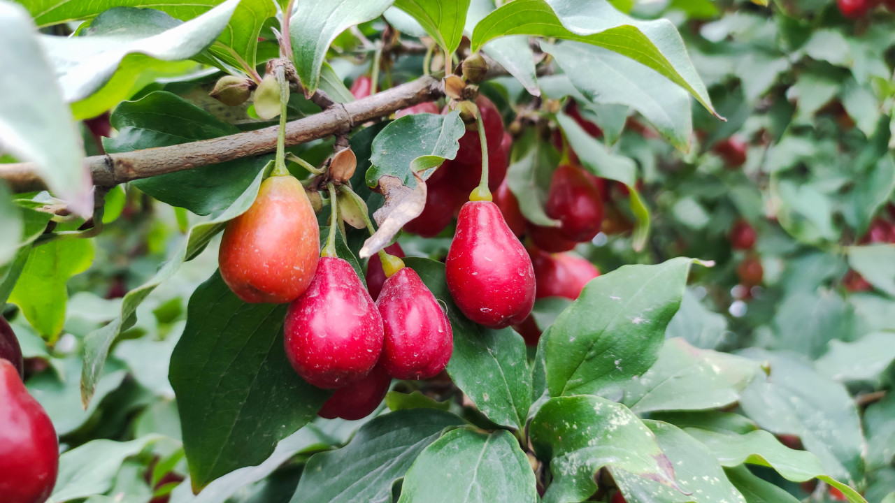 природа растение кизил кизил обыкновенный ягоды плоды красные ягоды ветка листья зелёная листва урожай созревание сад Cornus mas плодовый кустарник зелень красные плоды зрелость приусадебный участок дача дикоросы витамины полезные ягоды натуральные продукты фермерский заготовки варенье джем компот крупный план макроПохожие фотографии