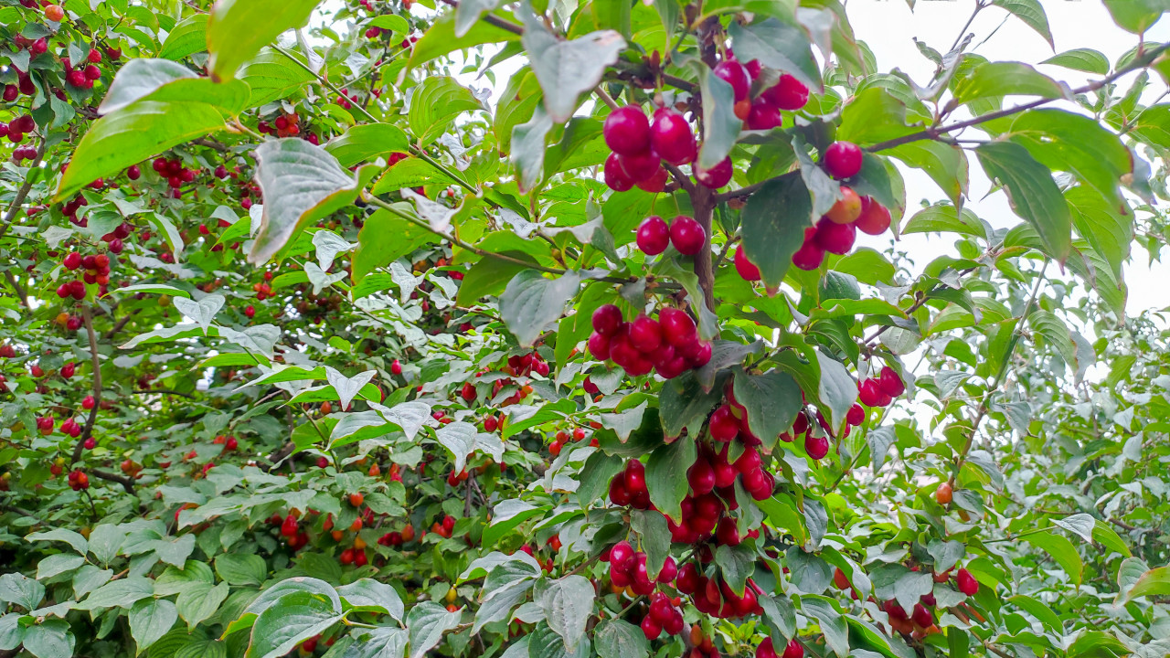 природа растение кизил кизил обыкновенный ягоды плоды красные ягоды ветка листья зелёная листва урожай созревание сад куст красные плоды много ягод ветви оранжевые ягоды плодовый кустарник витамины дикорастущие растения фермерские продукты варенье джем компот заготовки сезон лето ботаника пищевые ягоды натуральный фонПохожие фотографии