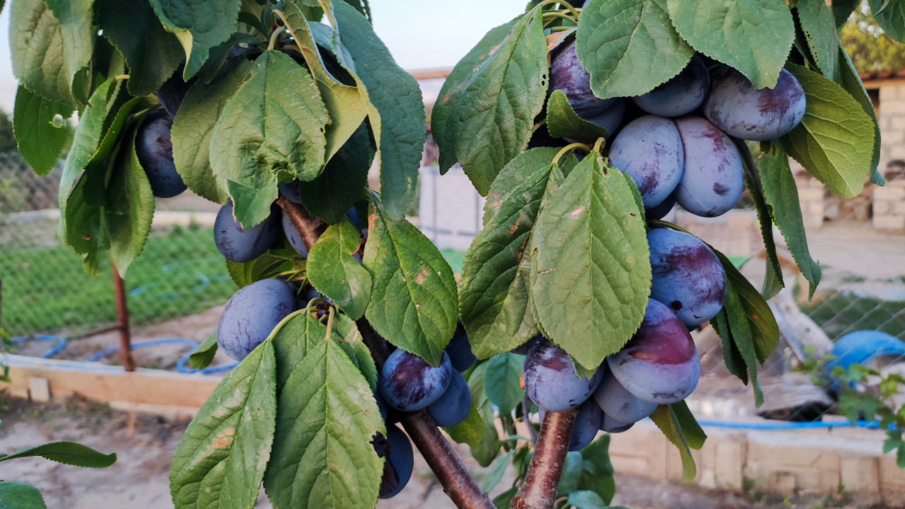 природа растение сад дача дерево ветка листья зелёная листва плоды фрукты урожай сезон садоводство выращивание натуральные продукты огород плодовое дерево слива сливовое дерево обилие урожая ветки зеленые листья садовый участок сетчатый забор грядки деревенский двор сбор урожая домашнее хозяйство фермерство свежие фрукты летний вечерПохожие фотографии