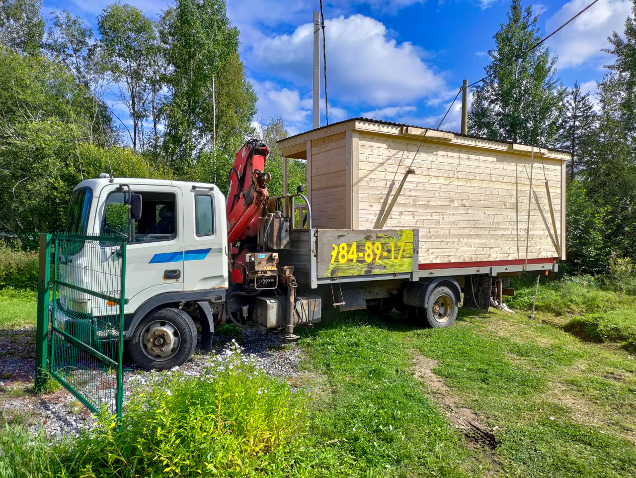 транспорт спецтехника подъёмная техника грузовик кран манипулятор перевозка доставка транспортировка логистика монтаж установка разгрузка стропы загородный участок манипулятор грузовой транспорт погрузка платформа борт крепление ремни гидравлика подъемная техника модульная постройка модульный дом бытовка деревянный домик хозяйственная постройка строительные услуги загород трава деревья дневной свет строительство аренда техникиПохожие фотографии