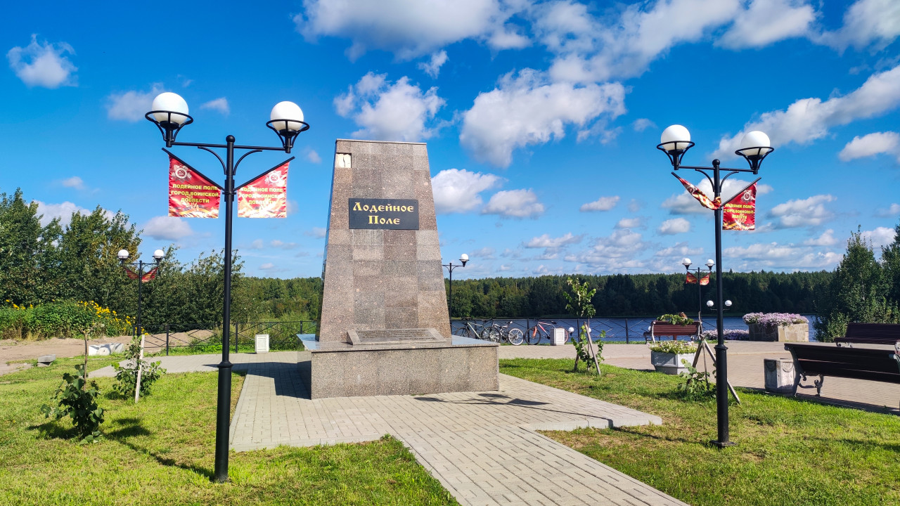 город городская среда общественное пространство архитектура благоустройство памятник стела памятный знак тротуарная плитка мощение набережная надпись Лодейное Поле прогулочная зона фонари уличное освещение баннер лавочка урна клумба цветы озеленение деревья пешеходы велосипед река берег туризм достопримечательность городской пейзаж летний день ясная погодаПохожие фотографии