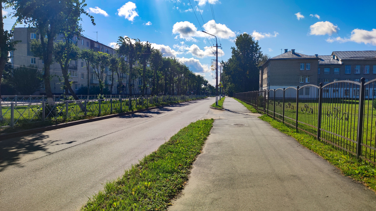 городской пейзаж городские улицы дороги дома улица городская среда город городской вид городская улица городская инфраструктура городской ландшафт урбанистика городская атмосфера уличное пространство тротуар дорога асфальт разделительная полоса газон зелёные насаждения деревья жилые дома пятиэтажный дом балконы фасад ограждение металлический забор кованый забор общественное здание кирпичное здание опора освещения уличный фонарь воздушные провода дорожные знаки перспектива благоустройство летний день голубое небо облака пешеходная зонаПохожие фотографии