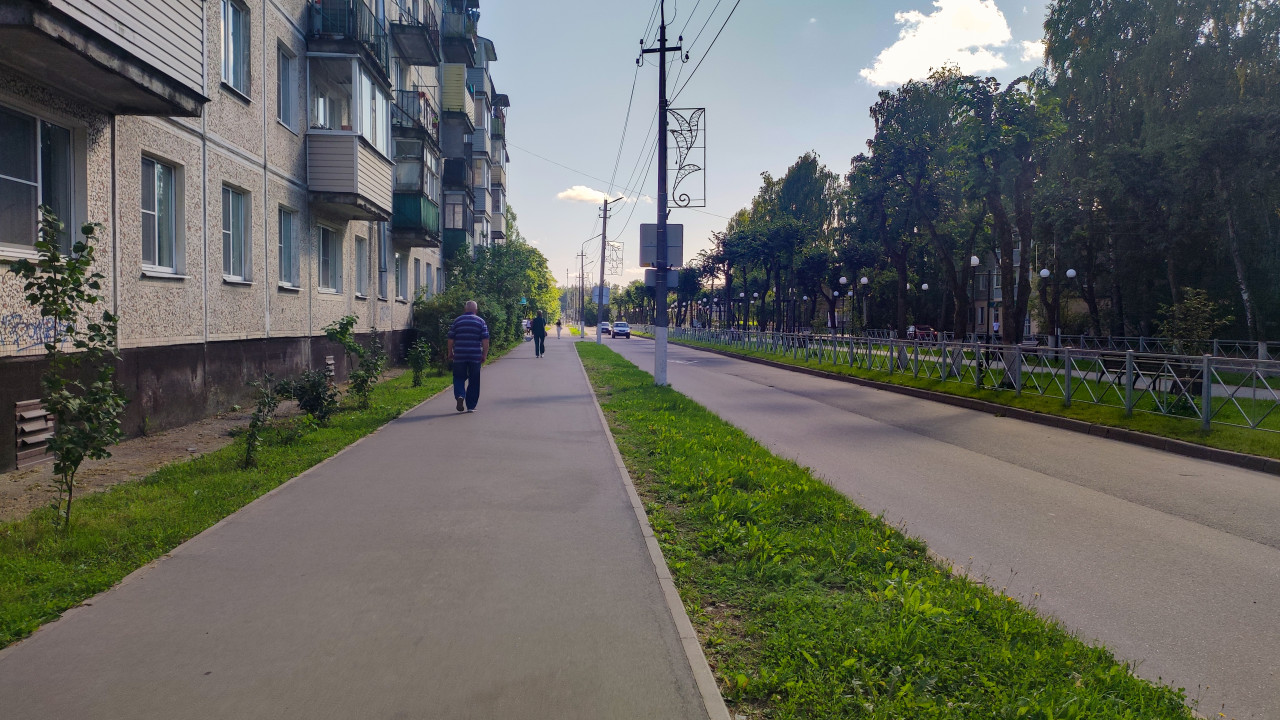 городской пейзаж городские улицы дороги дома улица городская среда город городской вид городская улица городская инфраструктура городской ландшафт урбанистика городская атмосфера уличное пространство жилой район пятиэтажки фасад дома балконы тротуар пешеходная зона дорога асфальт проезжая часть бордюр зелёная полоса газон деревья кусты тени забор ограждение уличные фонари опоры освещения провода благоустройство спокойная улица перспектива небо облакаПохожие фотографии