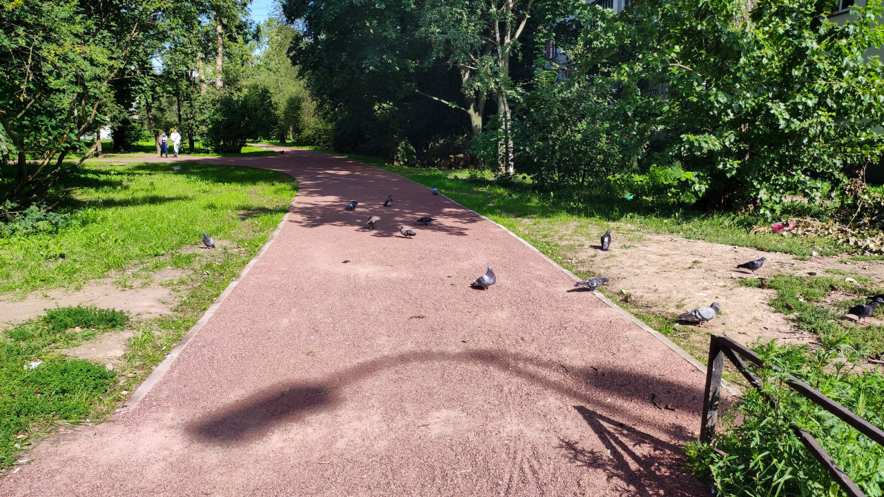 придомовая территория двор дворовая территория двор жилого дома жилой двор жилой квартал спальный район городской двор городская среда благоустройство территория около дома парк городской парк природа в городе прогулка дорожка пешеходная дорожка покрытие деревья зелёная зона трава лето солнечно голуби городские птицы птицы тени спокойствие отдых туризм городской пейзаж ландшафт аллея люди вдали экология прогулочная зона дневной светПохожие фотографии