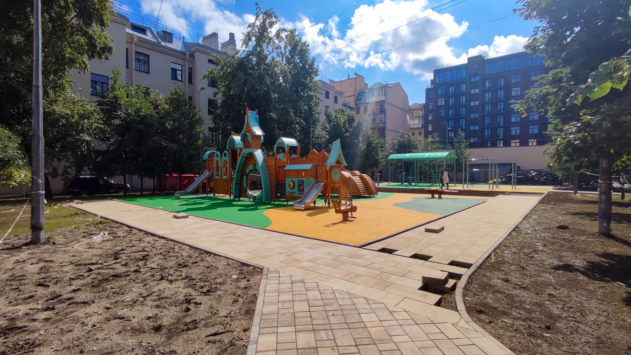 благоустройство детская площадка детские развлечения детский отдых детский досуг детское оборудование игровая зона игровое оборудование игровая площадка игровой комплекс развлечение физическая активность город двор детская инфраструктура городская среда резиновое покрытие безопасное покрытие детская горка лестница деревянная конструкция крепость лавочка урна ограждение спортивная площадка турник фонарь многоэтажный дом жилой квартал лето дневной свет отдых дети активные игры семейный отдых безопасностьПохожие фотографии