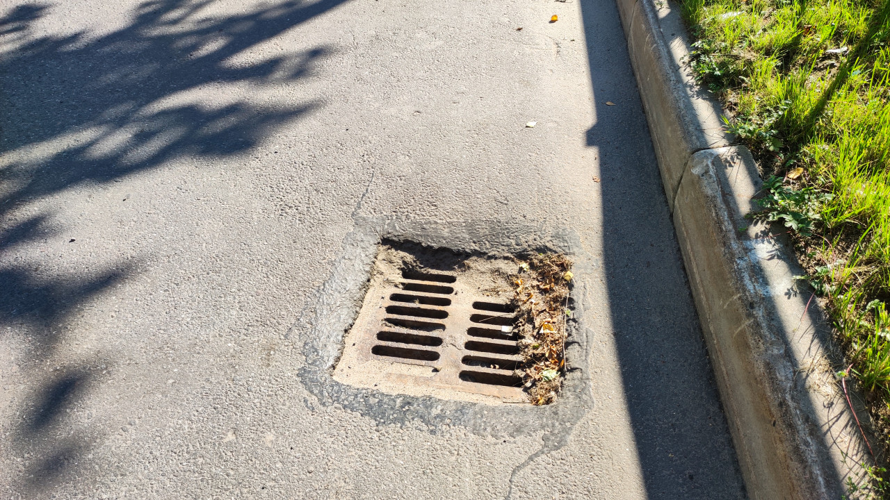 инфраструктура городская среда улица инженерные сооружения благоустройство город дорога асфальт бордюр обочина ливнёвка ливневая канализация дождеприёмник решётка водоотвод сток воды инженерная инфраструктура коммунальные системы содержание улиц листья листопад влажность грязь трава стык асфальта дефекты кромки крупный план фактура безопасность ремонт дорогПохожие фотографии