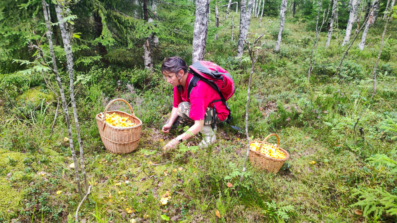 природа лес грибы съедобные грибы дикорастущие грибы лесная подстилка мох трава листья веточки почва люди женщина сбор грибов лисички лисичка тихая охота грибник корзина плетёная корзина урожай лесная поляна берёзы хвойные деревья папоротник рюкзак поход активный отдых экотуризм семейный отдых сезон осень заготовки сбор дикоросов натуральные продуктыПохожие фотографии