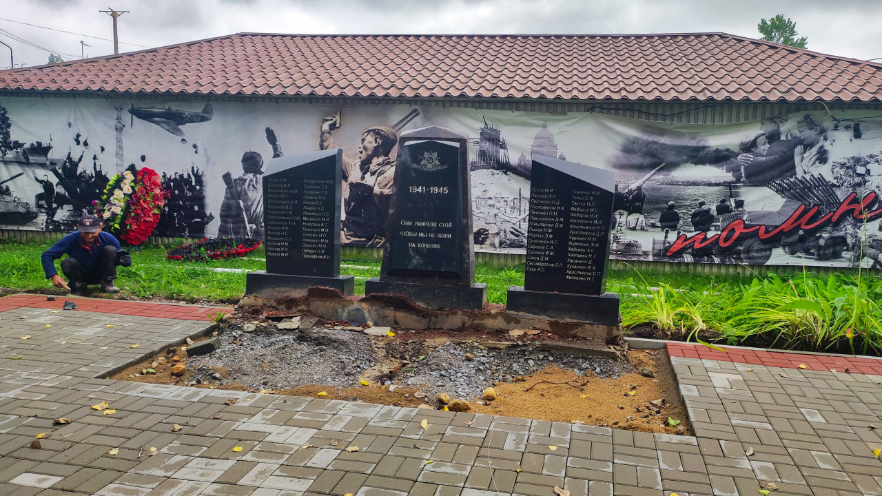 благоустройство благоустройство территории стройплощадка строительная площадка строительные работы строительство строительный участок мемориал памятник Великая Отечественная война 1941 1945 память имена погибших плиты с именами гранит камень стела вечная память патриотизм историческая память памятные мероприятия венки цветы настенная роспись мурал городская среда общественное пространство уход за памятником ремонт рабочий сквер аллея мемориальный комплекс памятное местоПохожие фотографии