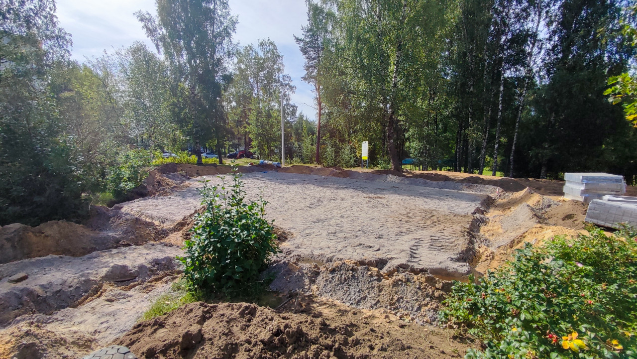 благоустройство благоустройство территории стройплощадка строительная площадка строительные работы строительство строительный участок парк площадка подготовка основания песчаное основание песок траншея земляные работы насыпи грунта следы шин техника укладка плитки тротуарная плитка брусчатка поддоны паллеты строительные материалы ремонт тротуара дорожные работы инфраструктура ландшафтные работы деревья городская среда подготовка под покрытие рабочая зона летоПохожие фотографии