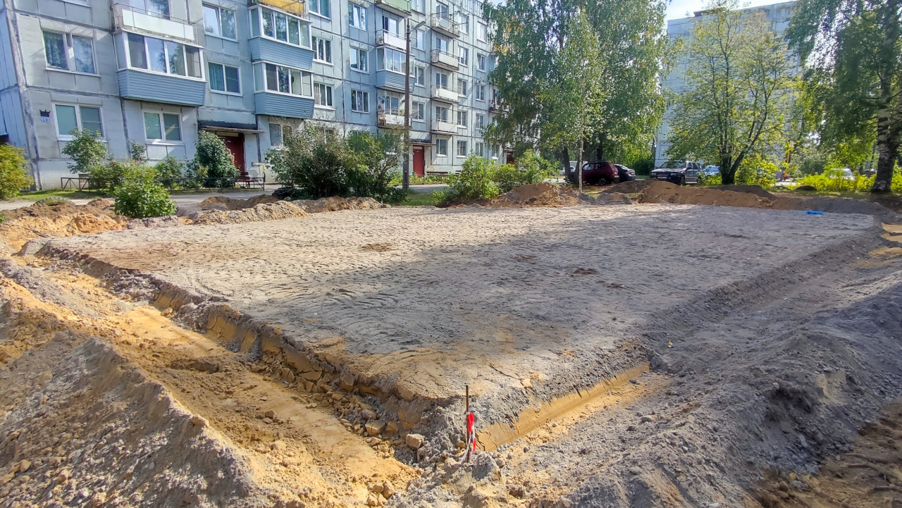 благоустройство благоустройство территории стройплощадка строительная площадка строительные работы строительство строительный участок двор новостройки жилой район земляные работы песчаная подушка песок выровненная площадка следы шин кучи грунта стройматериалы ограждение ремонт двора инфраструктура городская среда пешеходная дорожка деревья кусты подготовка под покрытие тротуар детская площадка коммунальные работы ЖКХ ландшафтные работы техника урбанистика летоПохожие фотографии