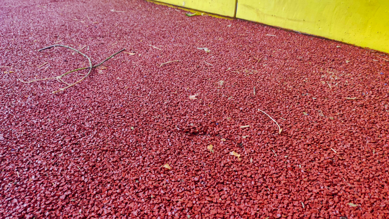 техническое состояние обследование строительный контроль дефекты повреждения износ строительство ремонт покрытие резиновое покрытие резиновая крошка красная крошка спортивная площадка двор благоустройство деформация вмятина просадка повреждение покрытия дефект эксплуатация обслуживание очистка уборка мусор листья веточки щепа грязь фактура текстура антискользящее покрытие безопасность борт желтый элементПохожие фотографии