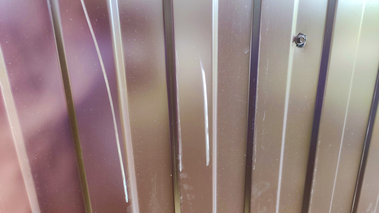 техническое состояние обследование строительный контроль дефекты повреждения износ текстура фон металл профнастил профлист забор ограждение коричневый рельеф вертикальные ребра листовой металл окрашенный металл поверхность фактура царапины потертости крепеж болт гайка соединение промышленный стиль строительство ремонт монтаж детали крупный план индустриальный фон минимализмПохожие фотографии