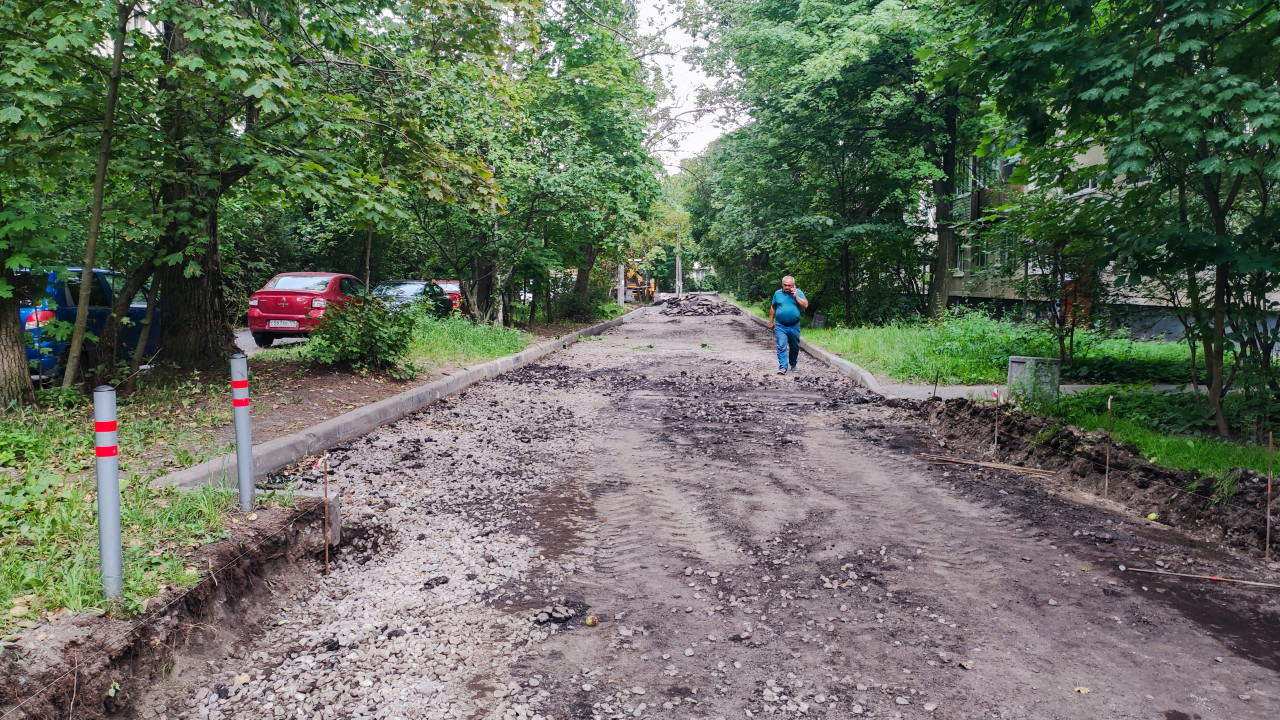 Снятый асфальт и дорожная техника на участке дворового ремонта
