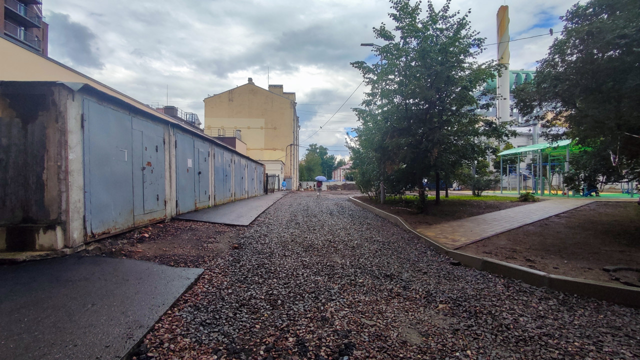 дорога проезд покрытие поверхность дорожные работы инфраструктура двор гаражи гаражные ворота металлические ворота хозяйственные постройки жилой квартал городская среда гравий щебень колея придомовая территория многоквартирный дом дворовая дорога детская площадка деревья зелень повседневность район благоустройство коммунальные службы хранение автомобиля парковка урбанистика городской двор лето спокойный дворПохожие фотографии