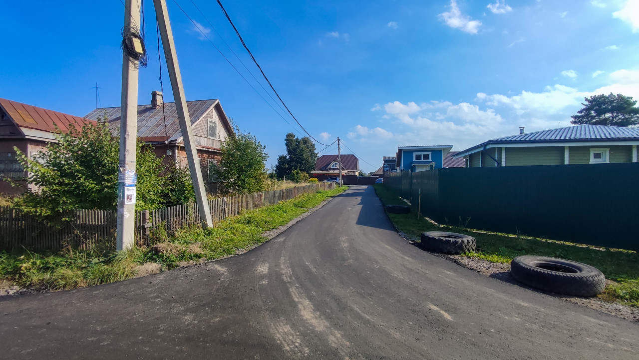 дорога проезд покрытие поверхность дорожные работы асфальт укладка асфальта ремонт дороги сельская улица частный сектор деревня обочина грунт щебень покрышки старые шины ограничители благоустройство инфраструктура забор ворота деревья кусты столбы провода лето голубое небо перспектива дорога без разметки строительство муниципальные работы ремонт покрытияПохожие фотографии
