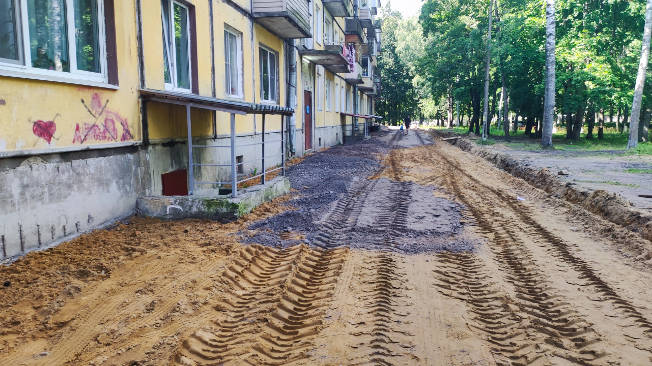 дорога проезд покрытие поверхность дорожные работы город ремонт дороги двор придомовая территория строительство временная дорога грунтовое покрытие щебень колея следы шин траншея грунт планировка выравнивание подготовка основания проезд вдоль дома фасад окна деревья пешеходы городская среда благоустройство коммунальные работы ЖКХ дневной свет лето ремонт двораПохожие фотографии