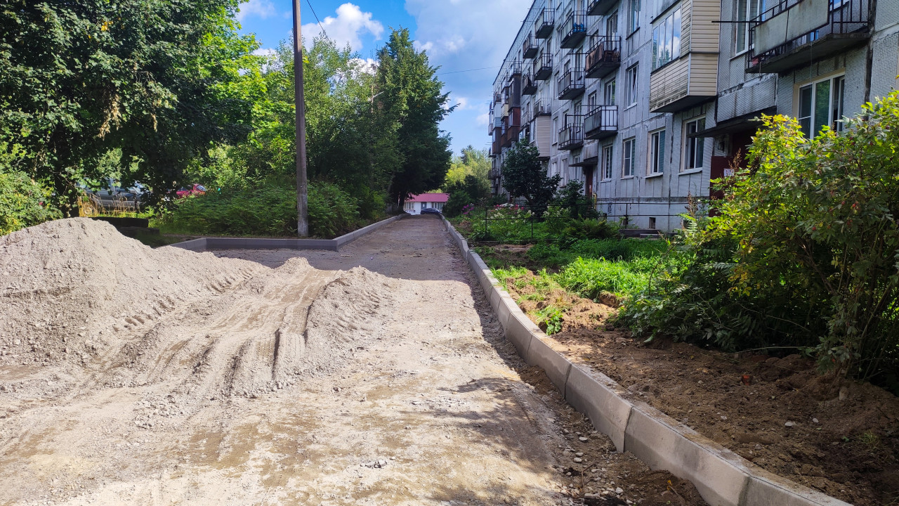 дорога проезд покрытие поверхность дорожные работы строительство благоустройство двор дворовая территория придомовая территория ремонт территории ремонт двора дорожка тротуар бордюр бордюрный камень установка бордюров щебень гравий песок подушка основание подготовка основания выравнивание строительные работы коммунальные работы инфраструктура городская среда озеленение кусты трава газон пешеходная зонаПохожие фотографии