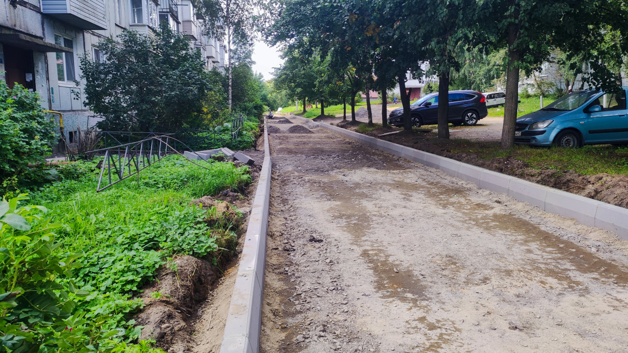 дорога проезд покрытие поверхность дорожные работы строительство благоустройство двор дворовая территория придомовая территория городская среда дорожка тротуар бордюр бордюрный камень бордюрирование установка бордюров щебень гравий песок подсыпка основание подготовка основания выравнивание ремонт территории ремонт двора коммунальные работы инфраструктура озеленение растения кусты газон пешеходная зонаПохожие фотографии