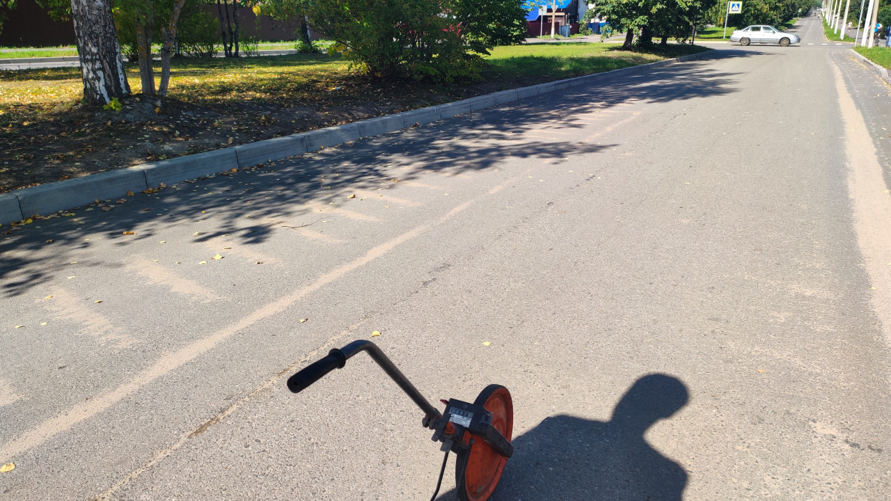 город улица дорога асфальт городская инфраструктура строительный контроль технический контроль обследование замеры измерения измерительное колесо курвиметр проезжая часть бордюр благоустройство замер инструмент дорожный курвиметр колесный меритель метр измерение расстояния разметка подготовка работ дорожные работы инженер геодезия тень деревья листва перекрёсток пешеходный переход городская средаПохожие фотографии