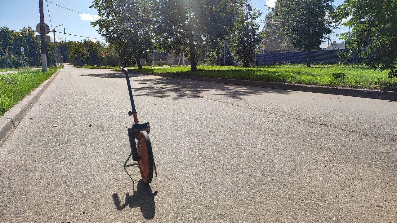 город улица дорога асфальт городская инфраструктура строительный контроль технический контроль обследование замеры измерения измерительное колесо курвиметр инструменты строительный инструмент измерительный инструмент колесо мерное измерение расстояния геодезия дорожные измерения дорожные работы фактура текстура тротуар пригород зелёная зона деревья провода перспектива контроль протяжённости инвентаризация ремонт оборудованиеПохожие фотографии