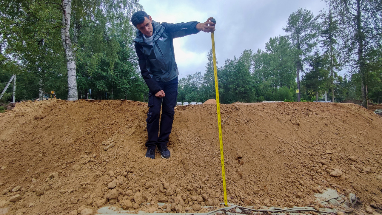 рулетка линейка измерение размеры сантиметры измерения измерительные работы обмеры замеры исследование качество контроль контроль качества проверка качества оценка качества экспертиза строительный контроль технический контроль технадзор строительный надзор технический надзор строительство благоустройство ремонт земляные работы песок отсыпка выравнивание основание замер перепадов контроль уровня измерительная рейка мерная рейка строительные работы рабочий спецодежда техника безопасности стройматериалы плитка бордюр дорожка лесополоса деревья грунт следы влажная погода приемка работПохожие фотографии