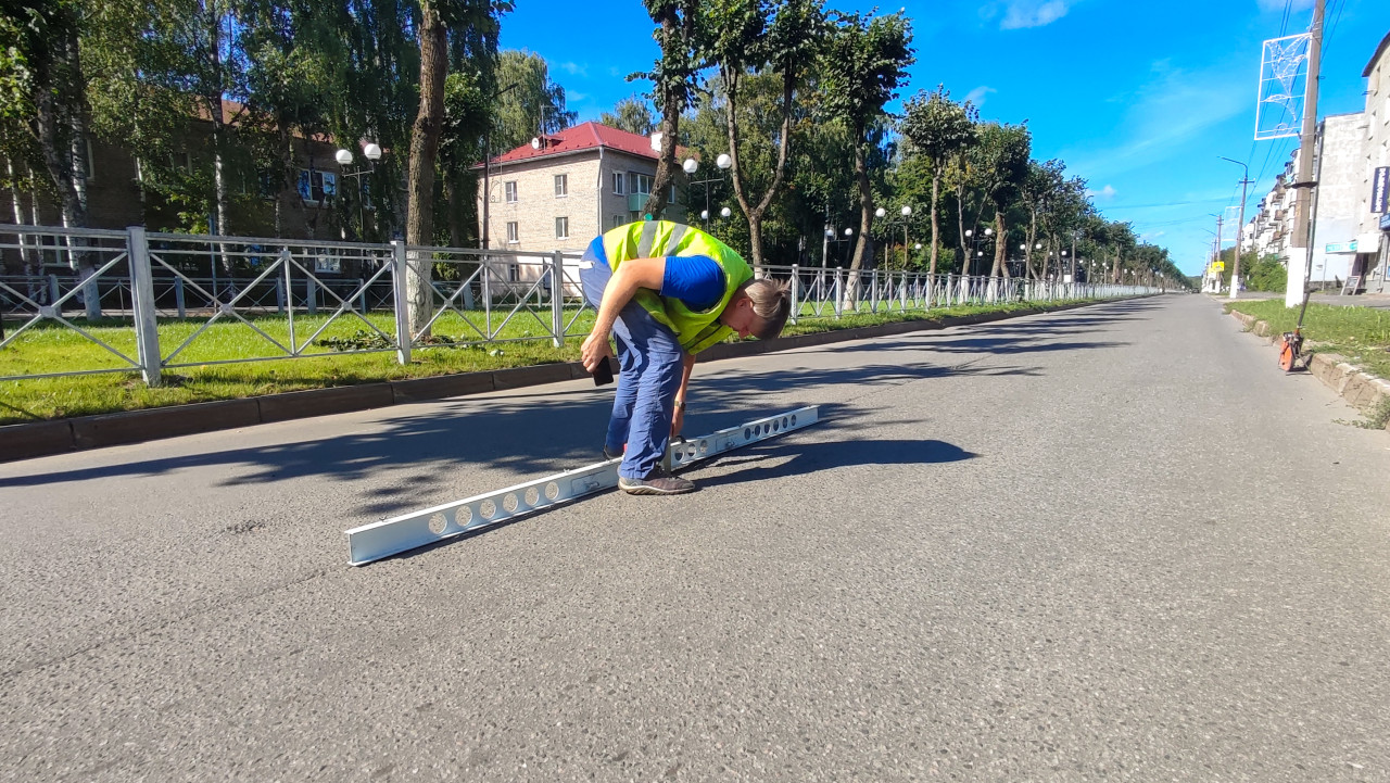 строительство дорога асфальт дорожное покрытие измерение замеры контроль качества технический контроль строительный контроль технадзор диагностика неровности рейка город улица дорожные работы продольная ровность клин промерник фиксация данных смартфон инженер инспектор сигнальный жилет безопасность ограждение тротуар бордюр деревья фонари знаки пешеходного перехода ГОСТ Р 56925 2016 диагностика дорог ремонт дорог проверка покрытияПохожие фотографии