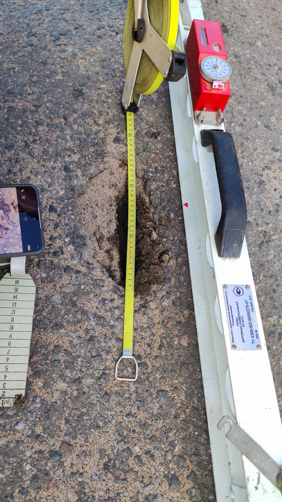 строительство дорога асфальт дорожное покрытие измерение замеры контроль качества технический контроль строительный контроль технадзор диагностика неровности рейка крупный план дорожная рейка клин промерник измерение неровностей продольная ровность контроль ровности ГОСТ Р 56925 2016 рулетка измерительная лента инструмент диагностика дорог обследование приёмка работ дорожные работы ремонт дорог измерение просвета фактура асфальта тени дневной свет методика техотчётПохожие фотографии