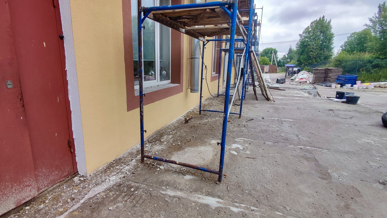 строительство ремонт здание фасад строительные работы обслуживание зданий техническое состояние строительные конструкции металлоконструкции отделка фасада ремонт зданий строительная площадка строительные леса металлоконструкция рабочая зона материалы паллеты мешки укрывная пленка инструменты складирование организация работ безопасность ограждение грязь следы техники двор городская среда окна подготовка стен штукатурка капитальный ремонт подрядчик благоустройство логистикаПохожие фотографии
