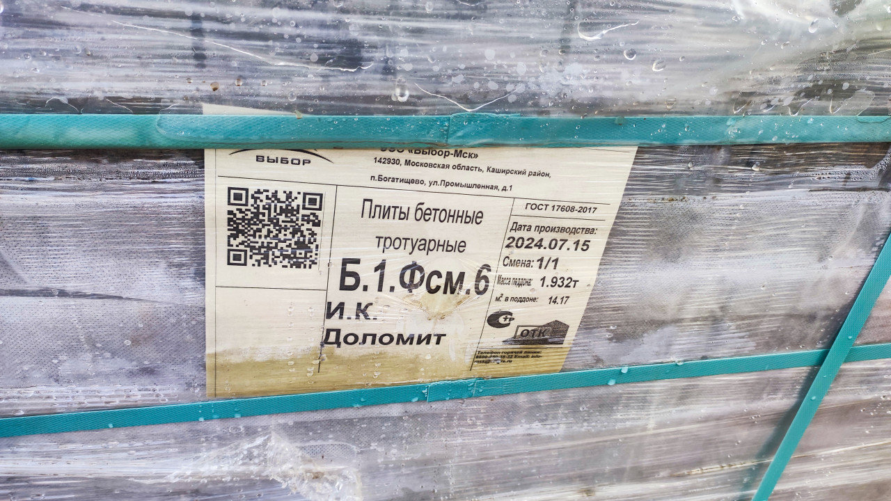 строительство благоустройство строительная площадка строительные работы строительные материалы поставка логистика складирование упаковка маркировка этикетка наклейка информационная табличка QR код штрихкод паллета поддон пленка тротуарная плитка бетонные изделия партия контроль качества приемка ремонт двора нормативы техническая информация сертификация идентификация товара крупный план промышленная маркировкаПохожие фотографии