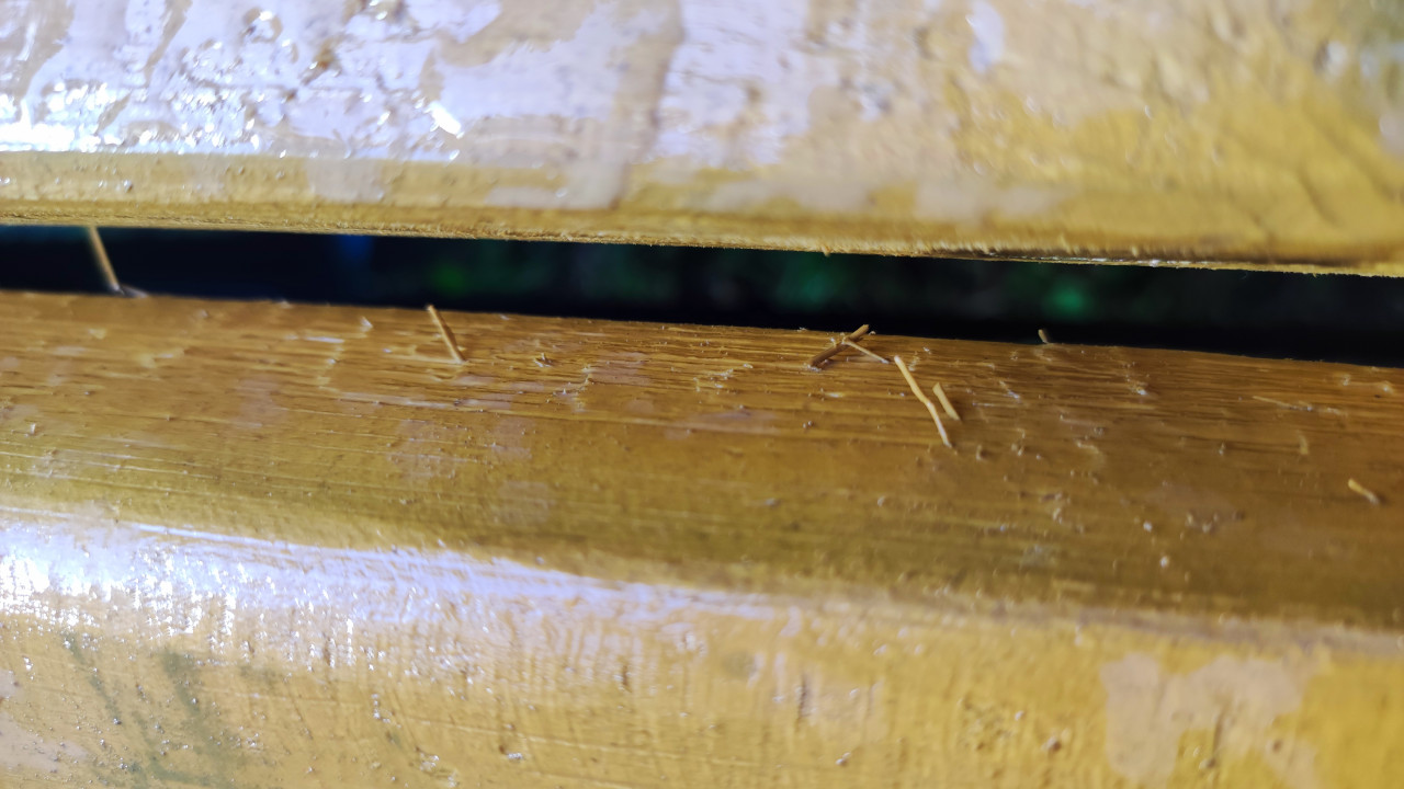 строительство благоустройство строительная площадка строительные работы строительные материалы поставка логистика складирование упаковка текстура фон дерево древесина деревянная поверхность лак лакированное дерево мокрая поверхность капли воды дождь царапины износ дефекты заноза волокна дерева крупный план макро фактура поверхность желтый цвет уличная скамейка рейки материал обработка дерева столярные работы ремонт мебели природный фон минимализмПохожие фотографии