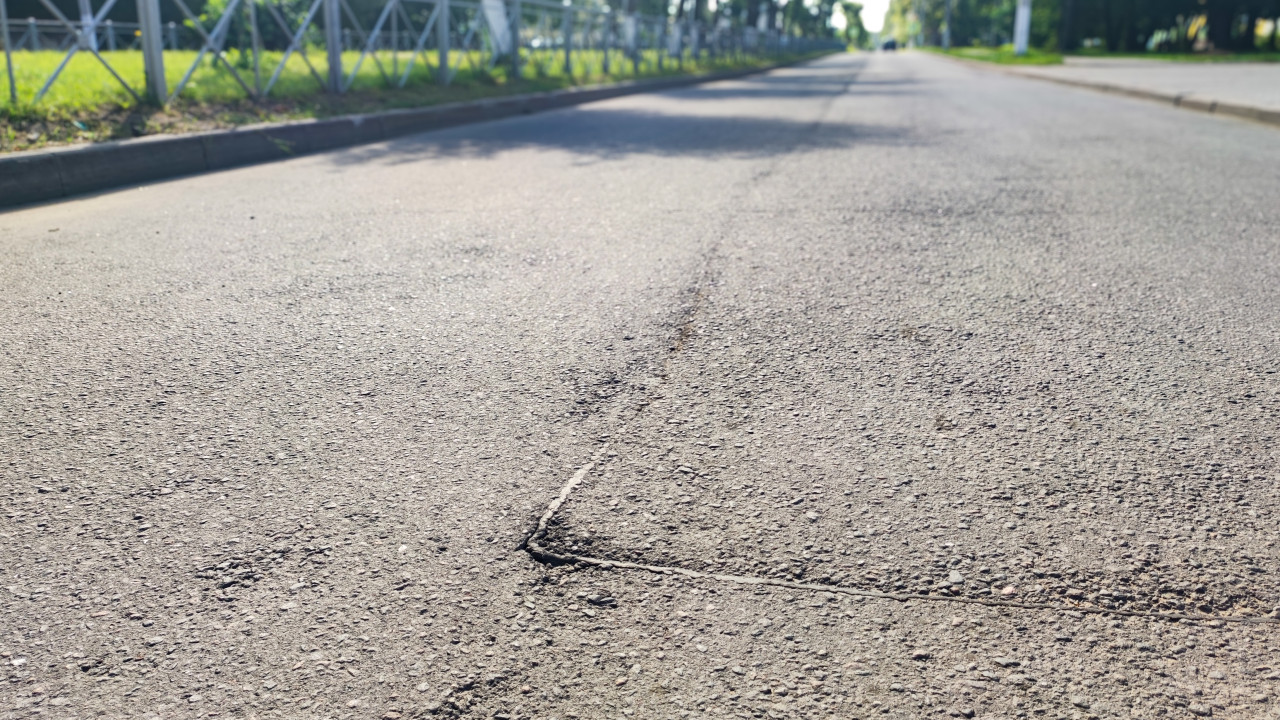 город улица дорога инфраструктура дорожное покрытие асфальт городской пейзаж перспектива низкий ракурс фактура стык асфальта трещина износ покрытия дефекты дороги бордюр обочина металлическое ограждение забор трава деревья летний сезон дневной свет тень безопасность движения ремонт дорог благоустройство урбанистикаПохожие фотографии