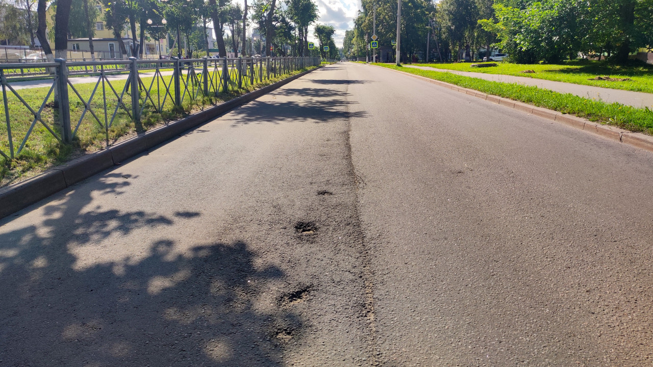 город улица дорога инфраструктура дорожное покрытие асфальт перспектива шов заплатки ремонт асфальта износ тротуар бордюр ограждение металлический забор зелёная полоса деревья тени дорожные знаки пешеходный переход безопасность городская инфраструктура урбанистика благоустройство организация движения тихая улица дневной свет летний сезон проезжая частьПохожие фотографии
