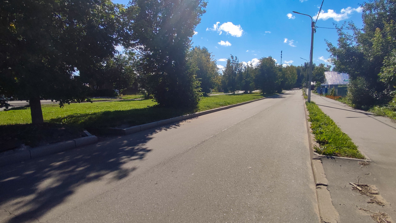 город улица дорога инфраструктура дорожное покрытие асфальт тротуар бордюр пешеходная зона кусты зелёные насаждения деревья лужайка жилой район небольшое строение металлическая крыша забор фонарный столб уличное освещение провода линии электропередачи перспектива тихая улица городская среда благоустройство лето солнечный день голубое небо кучевые облака прогулкаПохожие фотографии