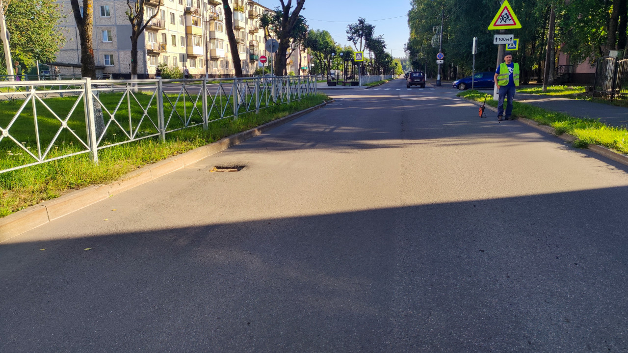 Разметка и дорожные знаки на шоссе среди леса