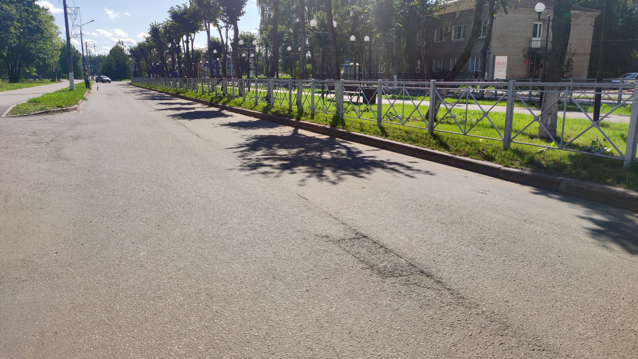 город улица дорога инфраструктура дорожное покрытие асфальт ремонт заплатка ямочный ремонт восстановление покрытия дефект дороги качество дорог проезжая часть ограждение металлический забор газон трава деревья тени солнечная погода городская инфраструктура обслуживание коммунальные службы контроль состояния дорожные работы благоустройство жилой район уличный пейзаж спокойная улицаПохожие фотографии