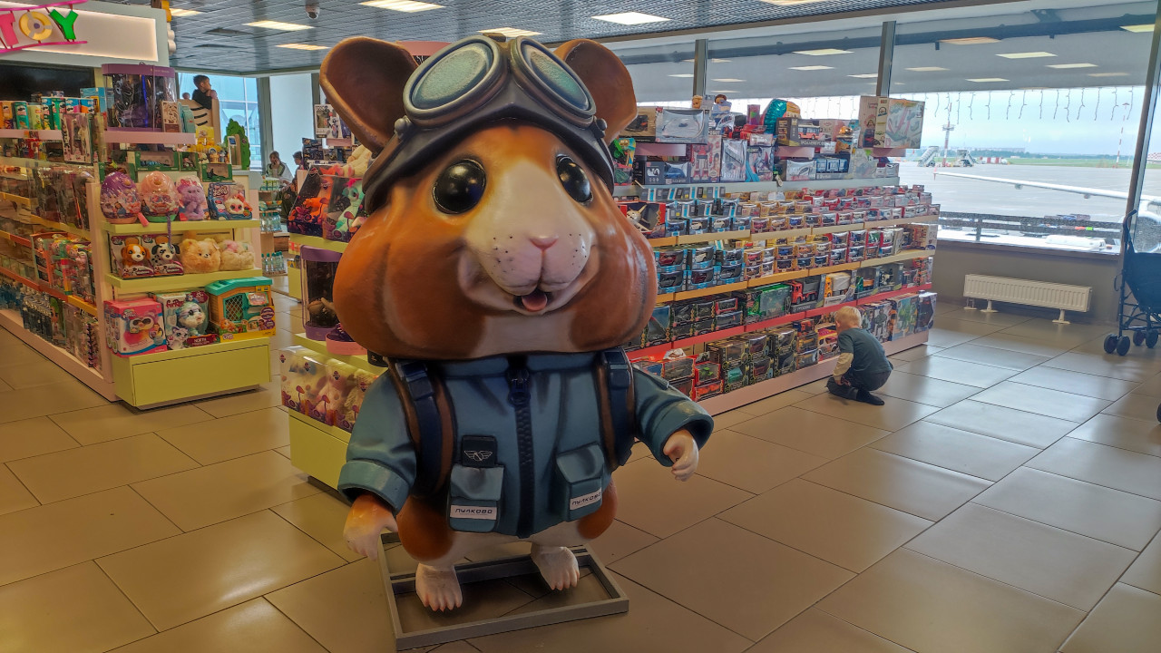 Фигура хомяка-лётчика в детском магазине аэропорта