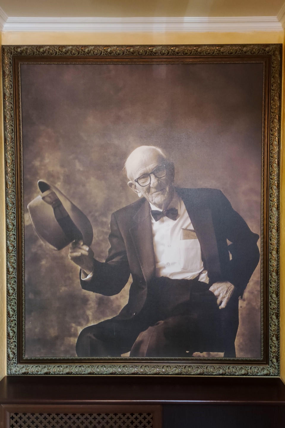 интерьер дизайн интерьера декор настенный декор портрет фотография картина рамка багет паспарту классический стиль ретро винтаж черно белое фото мужчина пожилой мужчина очки костюм элегантность арт галерея коридор помещение светлая стена декоративная решётка деталь интерьера эстетикаПохожие фотографии