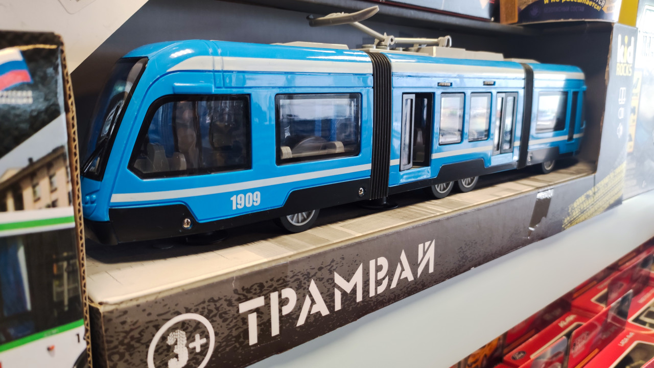торговля розница магазин витрина стеллаж полка товары ассортимент детские товары игрушки подарки выбор покупки детская игрушка трамвай городской транспорт модель трамвая миниатюра коллекционная модель упаковка коробка крупный план прозрачное окно дизайн упаковки маркировка штрихкод товар подарок сувенир транспорт урбанистика Технопарк Technopark игрушечный транспорт детский магазин карточка товараПохожие фотографии