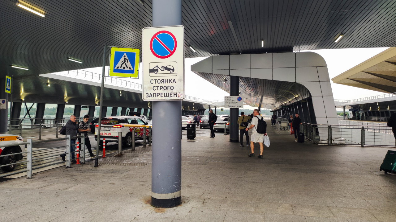 дорожные знаки знак столб пешеходный переход правила дорожного движения безопасность навигация аэропорт пулково санкт петербург зона подъезда терминал пассажиры люди вход навес ограждения барьеры автомобили такси транспортный узел городская инфраструктура путешествия авиация россия Пулково Санкт Петербург РоссияПохожие фотографии