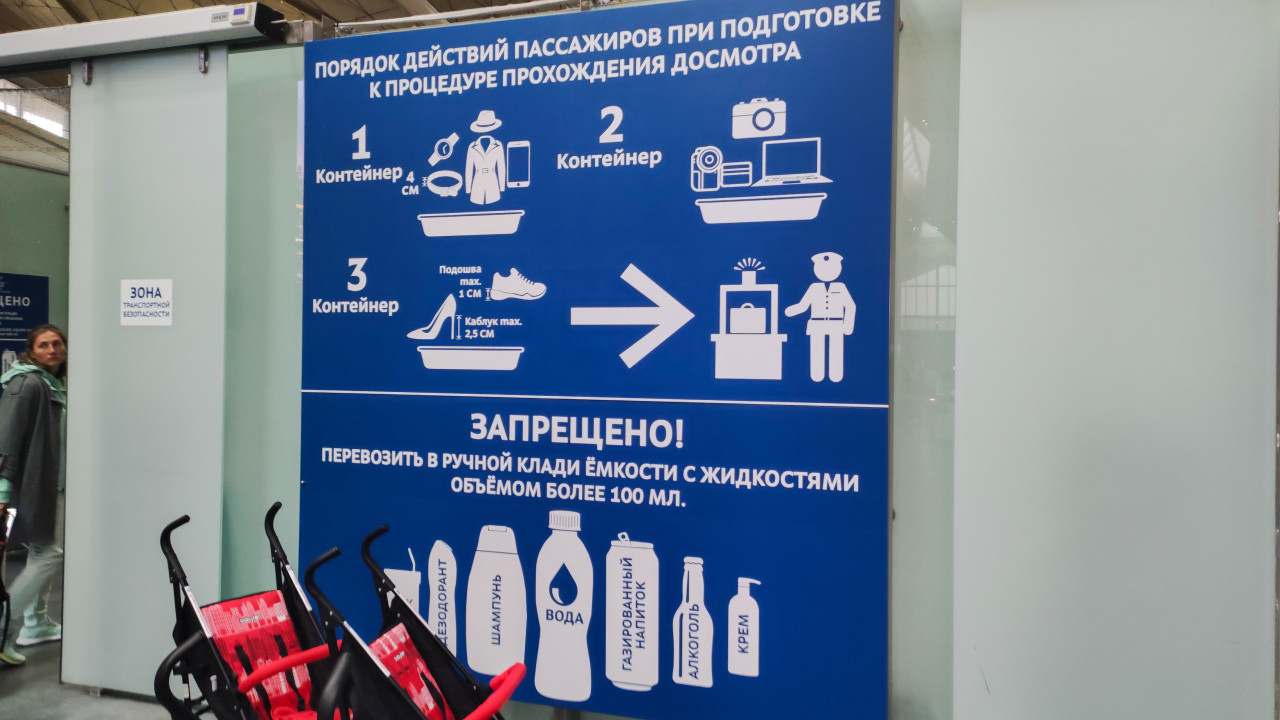 Плакат с порядком досмотра и запретом жидкостей более 100 мл