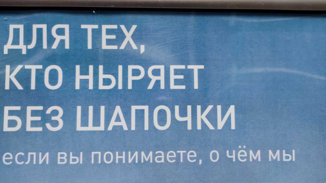 Текстовый постер «для тех кто ныряет без шапочки…» крупным планом