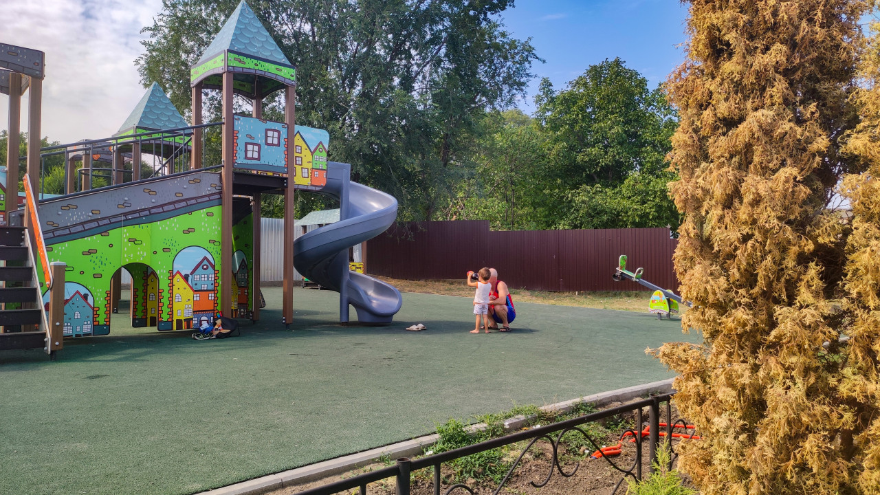благоустройство детская площадка детские развлечения детский отдых детский досуг детское оборудование игровая зона игровое оборудование игровая площадка игровой комплекс развлечение физическая активность город двор инфраструктура городская среда семейный отдых родители ребенок башня горка винтовая горка качалка балансир резиновое покрытие зеленое покрытие ограждение забор деревья частный сектор безопасность отдых лето дворовая территория площадка для детейПохожие фотографии
