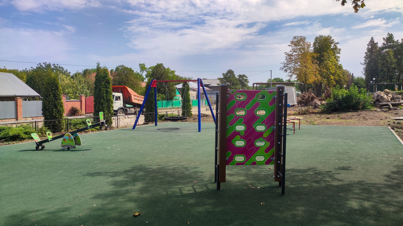 благоустройство детская площадка детские развлечения детский отдых детский досуг детское оборудование игровая зона игровое оборудование игровая площадка игровой комплекс развлечение физическая активность инфраструктура поселок частный сектор качели уличные качели балансир качалка балансир лазалка стенка для лазания резиновое покрытие мягкое покрытие резиновая крошка ограждение бордюр деревья забор ворота улица грузовик сельская территория общественное пространство безопасность прогулка развитие территории муниципальные работыПохожие фотографии