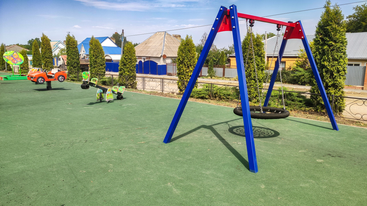 благоустройство детская площадка детские развлечения детский отдых детский досуг детское оборудование игровая зона игровое оборудование игровая площадка игровой комплекс развлечение физическая активность город двор инфраструктура игровые конструкции качели качели гнездо подвесные качели канатная сетка металлическая рама резиновое покрытие резиновая крошка зеленое покрытие амортизирующее покрытие безопасность ограждение жилые дома микрорайон новостройки уличные игры городская среда площадка во дворе солнечная погода тениПохожие фотографии