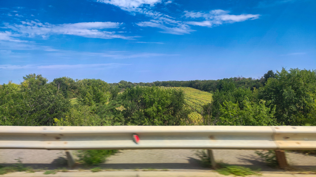природа пейзаж ландшафт сельская местность загородная местность поле сельское хозяйство сельхозугодья агроландшафт растения открытое пространство горизонт небо облака поля посадки рядами холм склон кустарник деревья зелень лето дневной свет голубое небо дорога трасса дорожная инфраструктура отбойник дорожное ограждение металлический барьер обочина путешествие автопоездка перспектива фонПохожие фотографии