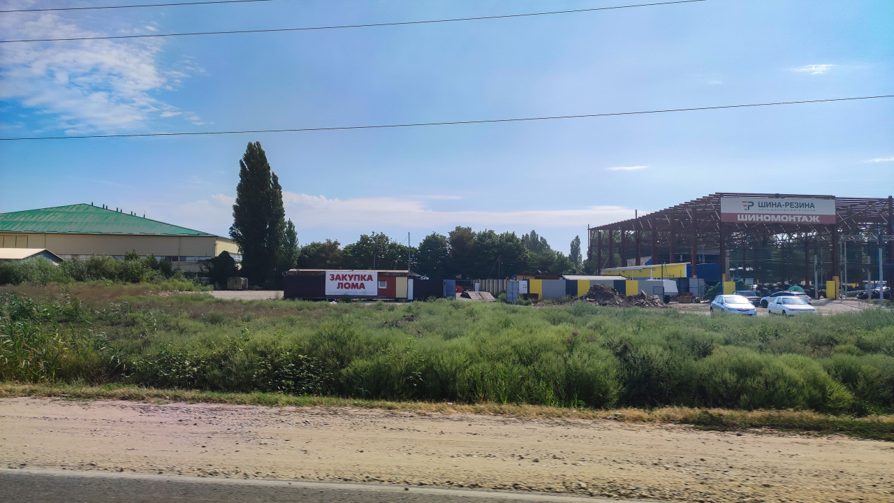 промышленная территория площадка здания инфраструктура склад техника оборудование металлоконструкции промышленность промзона производственная площадка металлолом лом прием металлолома пункт приема вторсырье переработка утилизация скупка лома шиномонтаж автосервис шины резина контейнеры навес ангар вывеска реклама парковка легковые автомобили грунтовая дорога обочина высокая трава забор проводаПохожие фотографии