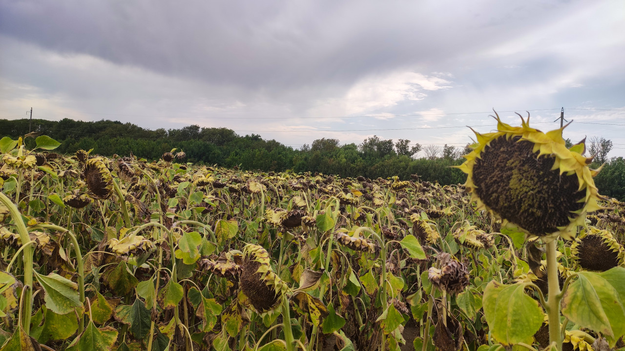 Поле подсолнухов под ярким небом