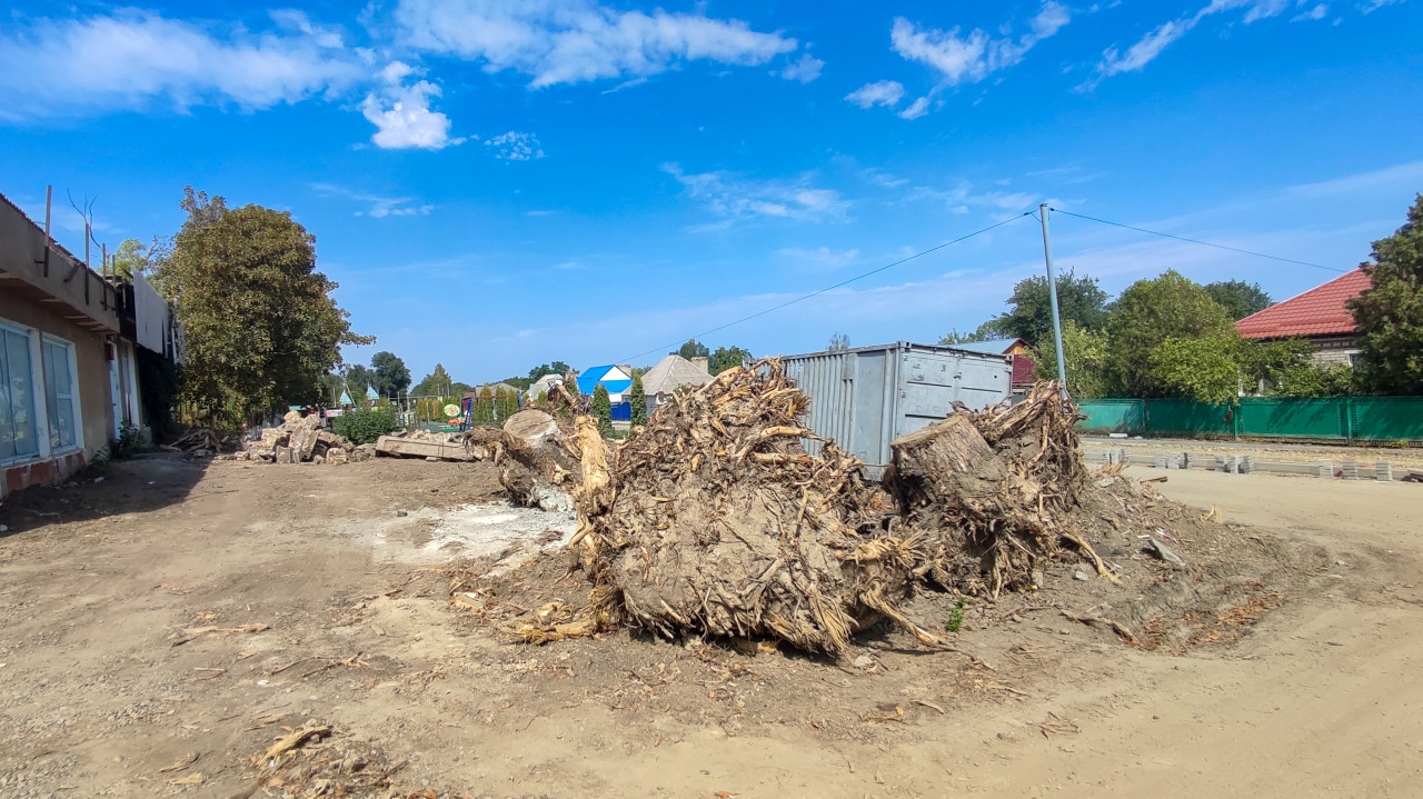 строительство земляные работы благоустройство ремонт улица посёлок уличная территория грунт земля разрытая почва корчевание корни частный сектор забор деревьяПохожие фотографии